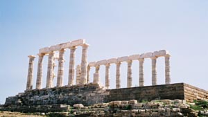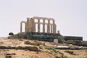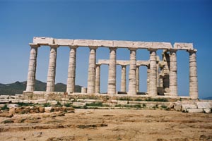 Ce temple dorique en marbre a été construit en 440 av JC. Quinze colonnes restent encore debout. Lamartine, Chateaubriand et Byron - qui grava son nom sur le pilier nord - trouvèrent là matière à alimenter leur sensibilité. |